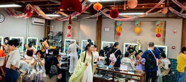 漫步在明水大街,街区纵横交错,道路两旁的商铺林立。客栈茶楼、布坊酱园、酒庄食肆,各类铺子应有尽有。走入纸鸢铺,画张五彩斑斓的纸鸢,将春日从手中放飞;走进普云善香堂,将温补的草药缝制进香囊,随身携带春日的气息;走进华梦灯坊,圆滚的宫灯,细长的鱼灯,绽放的荷花灯,令人应接不暇;走进如梦令伞扇店,亲手做一把水墨漆扇,以扇为纸,以漆为墨,入水一蘸一转,万千纹理便浮于扇中。